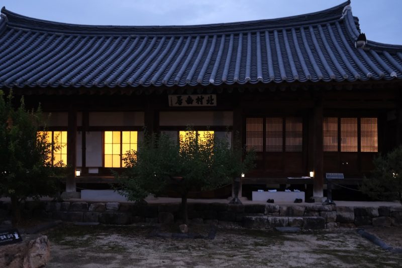 今回は、同じ河回村でも、かつて両班と呼ばれた貴族階級の格式ある家、北村宅(プクチョンテク)に宿を取った。文化遺産の中に身を置くという時間である。