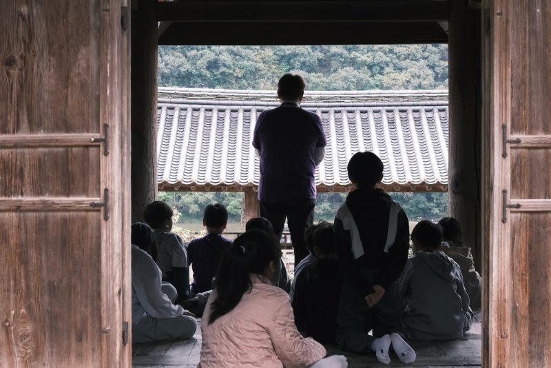 その後、川を挟んだ向かい側にある屏山書院へ向かう。ここはかつての儒教の私塾である。床と柱、そして天井に切り取られた外の景色は、まるで静かな屏風絵のようだった。ちょうど小学生たちが校外学習で訪れており、先生の熱のこもった声が印象的であった。